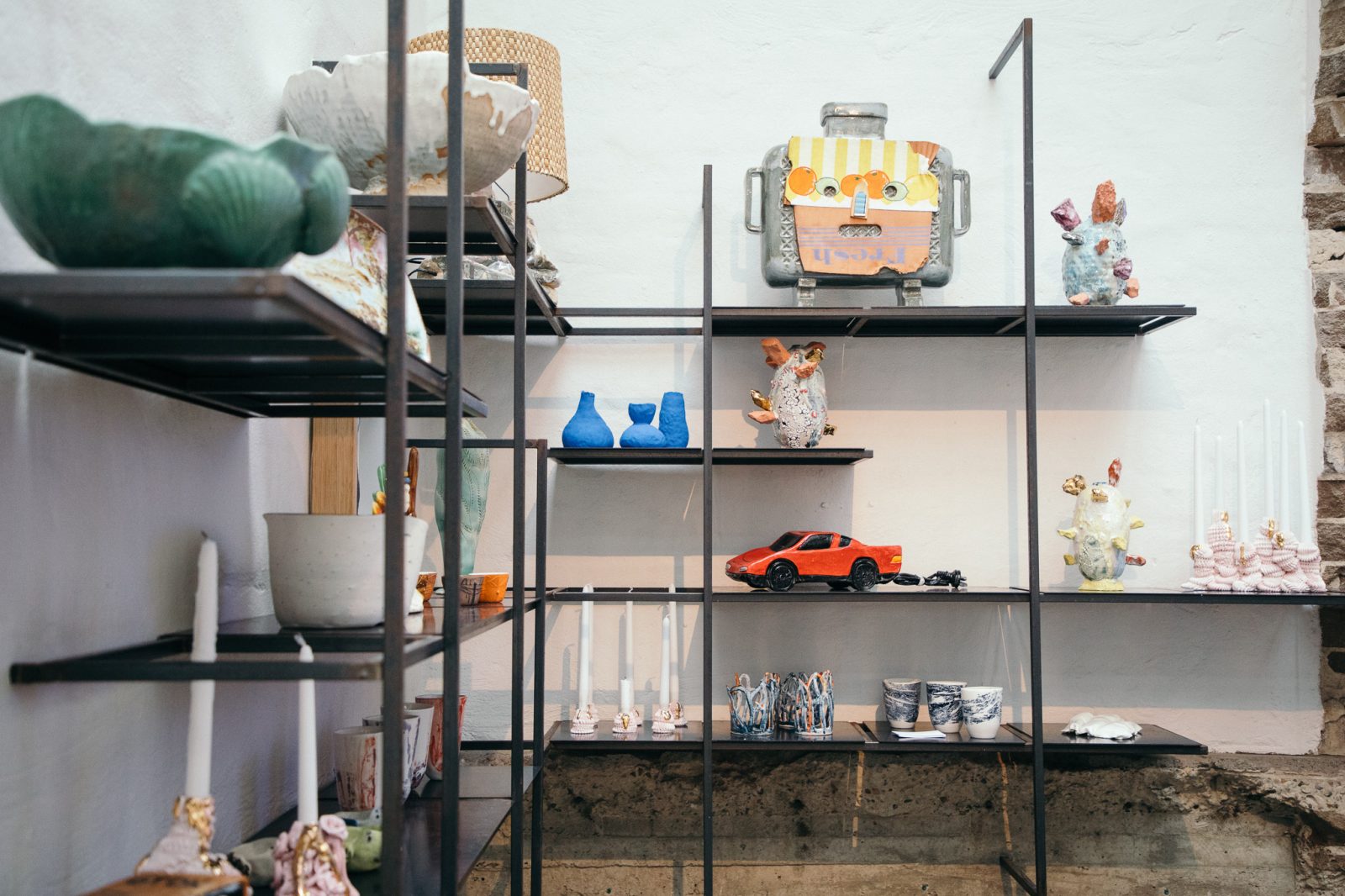 Once a week, the kiln is opened to fire works for whoever needs it. You can book space for one teacup, a shelf or two, or the whole thing if you need it. People come from all over with their works – hobbyists, artists, someone who has handmade an ashtray in their garage, and people rolling out limited lines of functional ceramics.